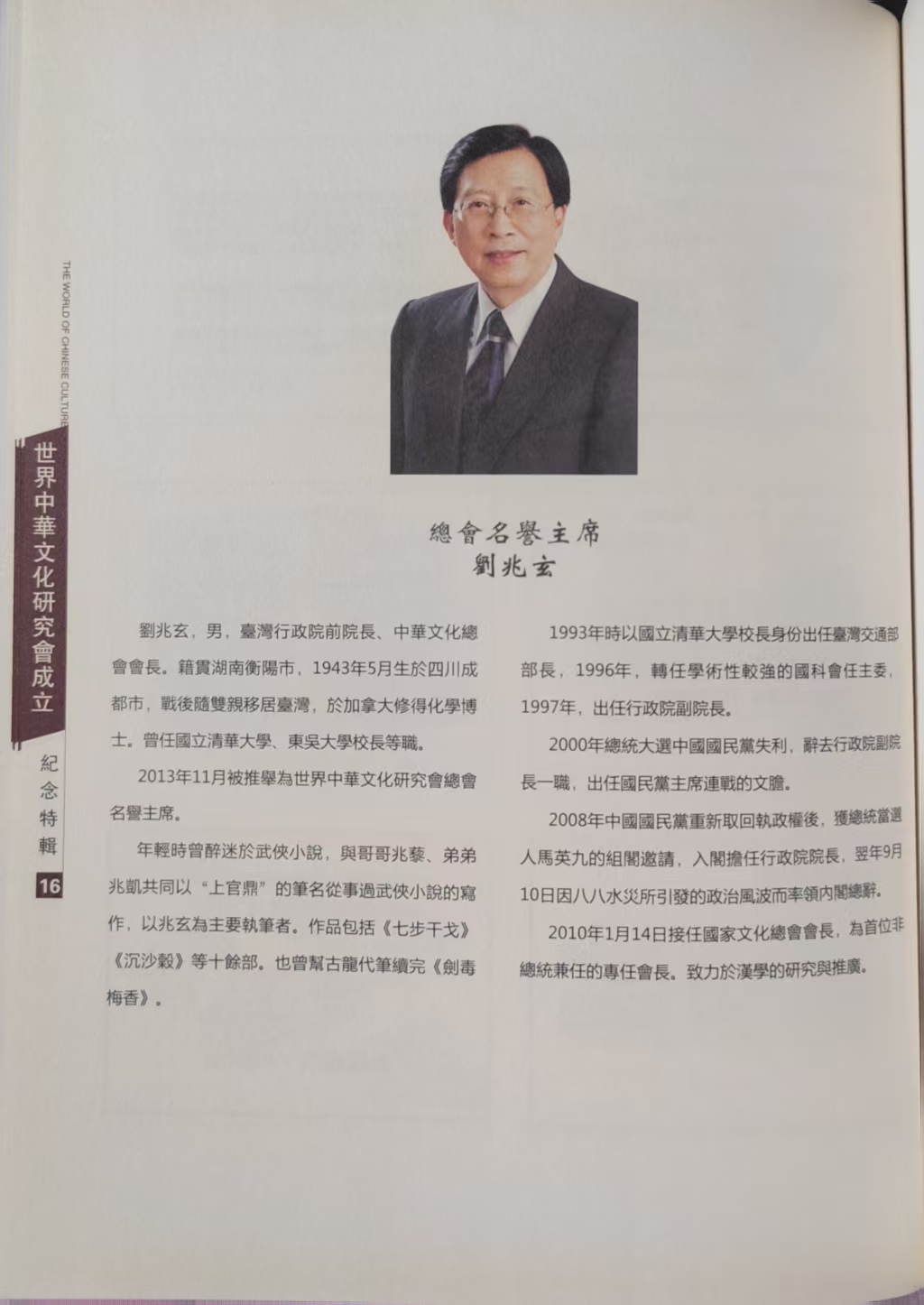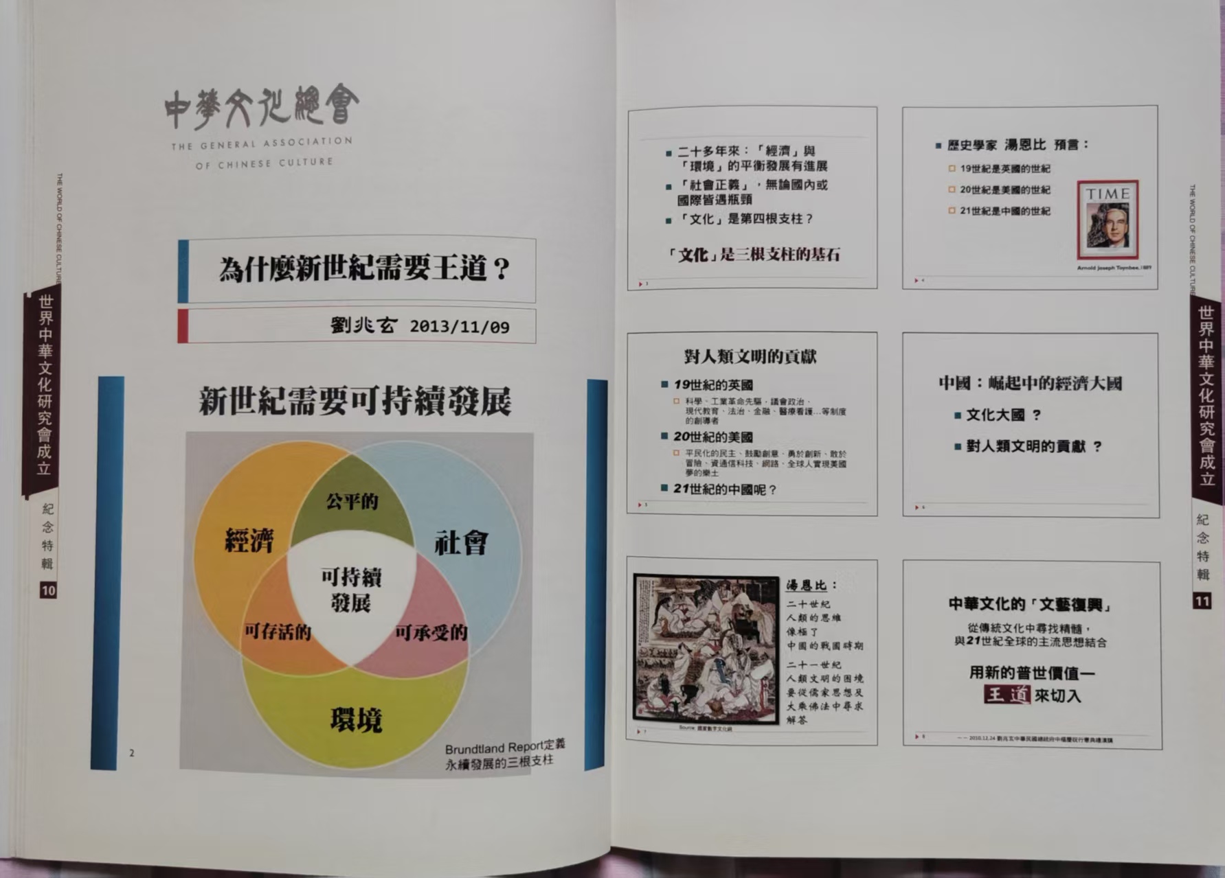 本网讯:本会名誉主席、中华文化总会主席刘兆玄先生在世界中华文化研究总会成立大会上发表主旨演讲及主持研讨,重点论述《为什么新世纪需要王道文化》,世中总会主席拿督斯里陈荣立局绅等参加了此次活动。世中总会纪念特刊文图并茂刊发。