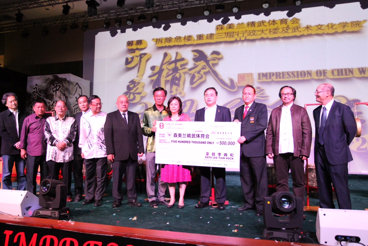 吉隆坡3月21日讯:世界中华文化研究会总会主席、拿督斯里陈荣立局绅、教授,总会副主席、准拿督徐忍川教授,20日出席在马来西亚芙蓉举行的“印象精武世界冠军传奇”晚宴。席开126桌,多个武术世界冠军出席表演,更有多位当地政要富商莅临,筹得马币135万,意为重振百年精武!