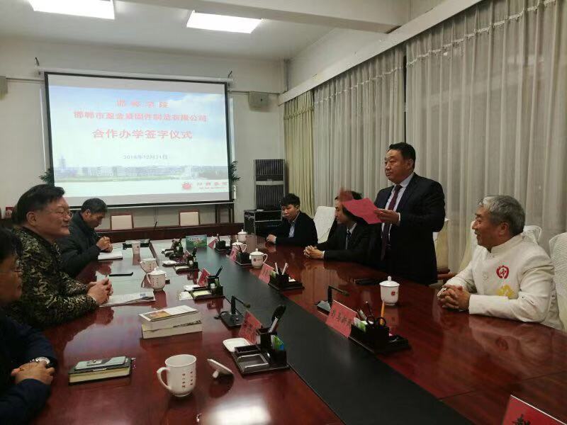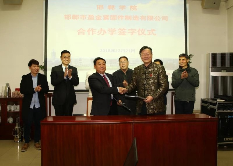 邯郸学院是邯郸市政府主办的公立二本综合院校,具有一百多年的办学历史的地方名校。邯郸市盈金紧固件制造有限公司是邯郸市一家实力雄厚且信誉优良的企业,强强联手将开启校企联合的新样板新模式,
