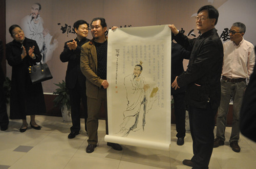 展览共展出画家近期创作的邯郸历史人物荀子、杨露禅,扬州历史人物夫差、伍子胥等近百幅作品。