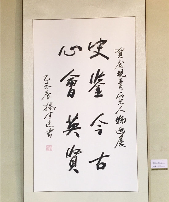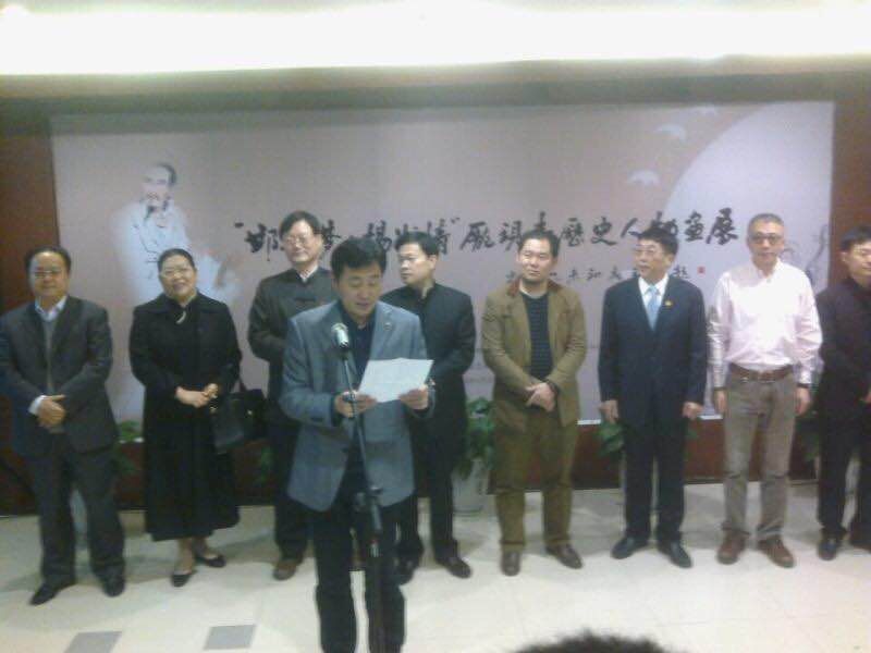 本网讯(记者 马可)3月28日上午,由我会策展、邯郸学院主办,邯郸市政协书画院、邯郸市荀子研究会、邯郸市文艺家评论协会协办,新世纪阳光美术馆、邯郸学院艺术学院承办的“邯郸梦•扬州情”庞现青历史人物画展在邯郸市新世纪六楼阳光美术馆举行开幕式。邯郸学院校长马计斌、邯郸市政协副主席赵浩军、市委宣传部常务副部长潘璐、邯郸市荀子研究会会长吕学哲,我会总会秘书长马新民、江苏省文联中易书画院常务副院长马跃、邯郸新世纪阳光美术馆馆长何家聪、扬州市著名人物画家扬州八怪研究院副院长庞现青、邯郸学院艺术学院美术专业师生与邯郸市美术业界人士二百余人参加了开幕仪式。邯郸学院杨金廷书记为展览题词,马计斌校长为展览撰写前言并题词,河北省书协副主席、邯郸市书协主席韩玉臣题写了展名。邯郸学院艺术学院院长方强教授主持了开幕式。