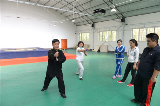 邯郸学院杨氏太极拳总教练常关成老师在教授太极拳法