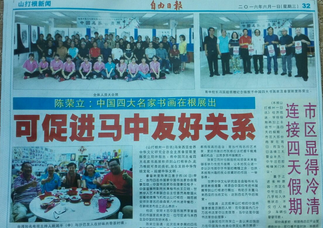 《自由时报》:中国四大名家书画在根展出 可促进马中友好关系