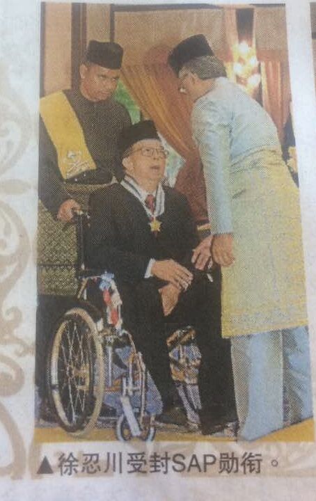 吉隆坡2018年4月9日电:本会创会副主席徐忍川教授,日前受封马来西亚彭亨苏丹封赐SAP准拿督勋衔。