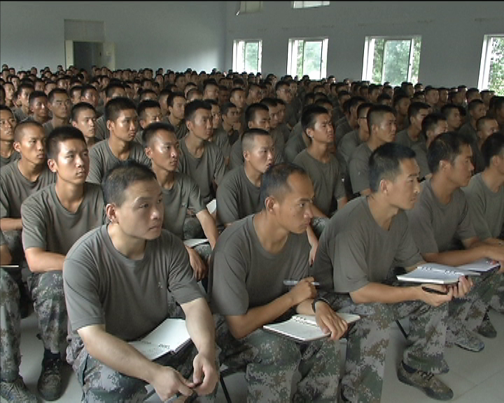 酷暑高温下汗流浃背的官兵依然聚精会神地在分享荀子思想。