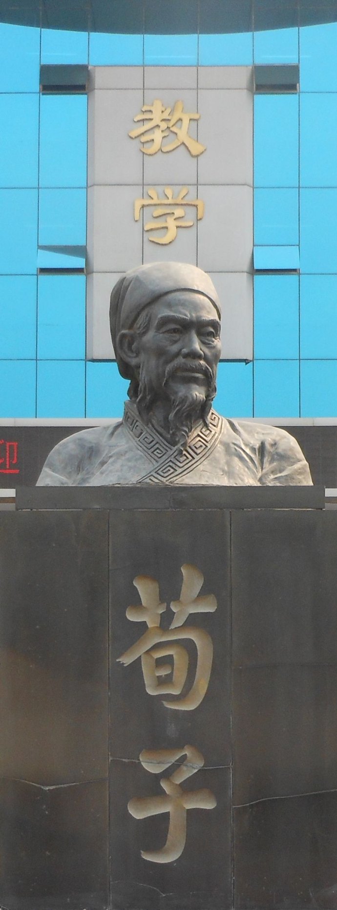 荀子十五岁时去齐国求学,曾三次被奉为齐国最高学府稷下学宫的祭酒——学术领袖,并被称为是最有学问的老师。受邀与秦昭襄王议论国家大事,谏言秦王法儒并重才能使国家长治久安的重要性;同赵孝成王议兵,决定战争胜负的不是战略战术的高低,武器的优劣,而是君民一心。曾两次担任兰陵县令,十七年政绩斐然。数十年教书育人,硕果累累。弟子李斯和张苍,分别作了秦国和汉朝的宰相。著名的法家人物韩非,《诗经》的传承者毛亨等大儒都是荀子的学生。荀子还开创了赋和说唱文学的先河,被称为赋体之父,说唱鼻祖。